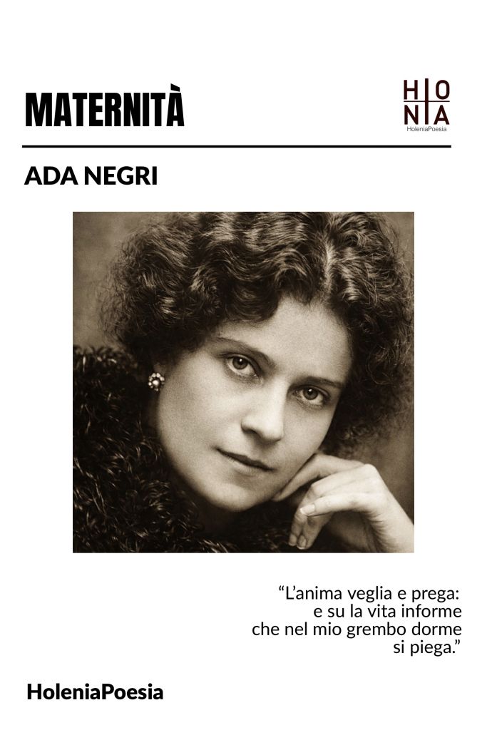 Ada Negri (Lodi, 1870 – Milano, 1945) è una delle voci più significative della poesia italiana tra Otto e Novecento. Di origine modesta, dopo gli studi magistrali intraprese la professione di insegnante, iniziando parallelamente l’attività poetica. Il successo arrivò precocemente con la raccolta Fatalità (1892), che la impose all’attenzione della critica per la forza morale e sociale dei suoi versi. Seguirono opere come Tempeste (1895), Maternità (1904) e Dal profondo (1910), nelle quali la sua poesia evolve progressivamente da un iniziale impegno civile verso una dimensione più intima e meditativa. Accanto alla produzione poetica pubblicò anche prose autobiografiche di grande fortuna, tra cui Stella mattutina (1921). Nel 1931 fu la prima donna ammessa all’Accademia d’Italia. La sua opera, attraversata da una intensa sensibilità umana e da una costante riflessione sulla condizione femminile e sul significato della vita, occupa un posto di rilievo nella tradizione lirica italiana del Novecento.