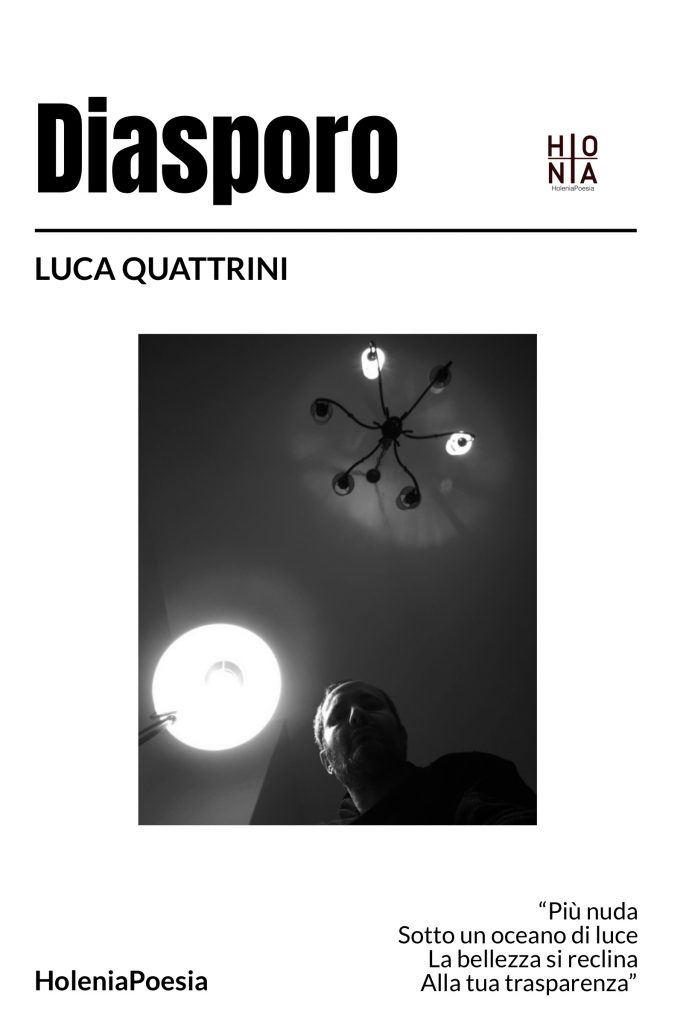 Luca Quattrini nasce a Pavullo nel Frignano (Mo) nel 1974. Laureato in Storia contemporanea e in Storia, culture e civiltà orientali (Università degli studi di Bologna), si avvale anche di un Master in Geopolitica (Roma, Sioi-Limes). Ha pubblicato sei opere di poesia: “Cortometrico”; “Diasporo”; “Q. Poema Imago-Vorticista”; “Vandor”; “Paràclito”; “Dagherrotipia”. Per HoleniaPoesia ha curato le traduzioni di Yvan Goll e Antonin Artaud e l’antologia “Poeti Imagisti”. Tre le opere di saggistica: “Mussolini e le leggi razziali”; “Shinto”; “Antisemitismo e identità europea”.