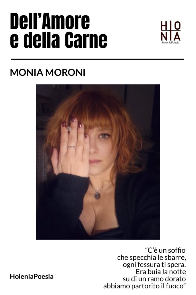 Monia Moroni nasce ad Ancona nel 1973 nel quartiere delle Grazie, una strada tutta in salita. Si avvale di una laurea come Assistente Sociale e un corso di scultura. Vive per vent’anni in Piemonte, attualmente dimora ad Osimo (An). Impiegata postale, esordisce nel 2020 con la silloge “Operette in Marca, Versi d’una guardiana dell’armadio di scarpe” (Theta Edizioni). Prosegue nel 2021 con la pubblicazione di “Svola Balena! Poesie allo stato gassoso” (Cicorivolta Edizioni) e partecipa ad un’antologia in favore di Emergency dal titolo “Cuori a Kabul – Poesie per l’Afghanistan” (Graphe Edizioni). Nell’ottobre 2022 pubblica la silloge “Dell’amore e della carne” (Chipiùneart Edizioni), per la quale ottiene dei riconoscimenti in concorsi internazionali di letteratura (seconda edizione, HoleniaPoesia, 2025). Con “Stella binaria” (HoleniaPoesia, 2025) esplora nuovi linguaggi poetici, in costante tensione tra lirica e prosa. Appare su alcune riviste e blog letterari.